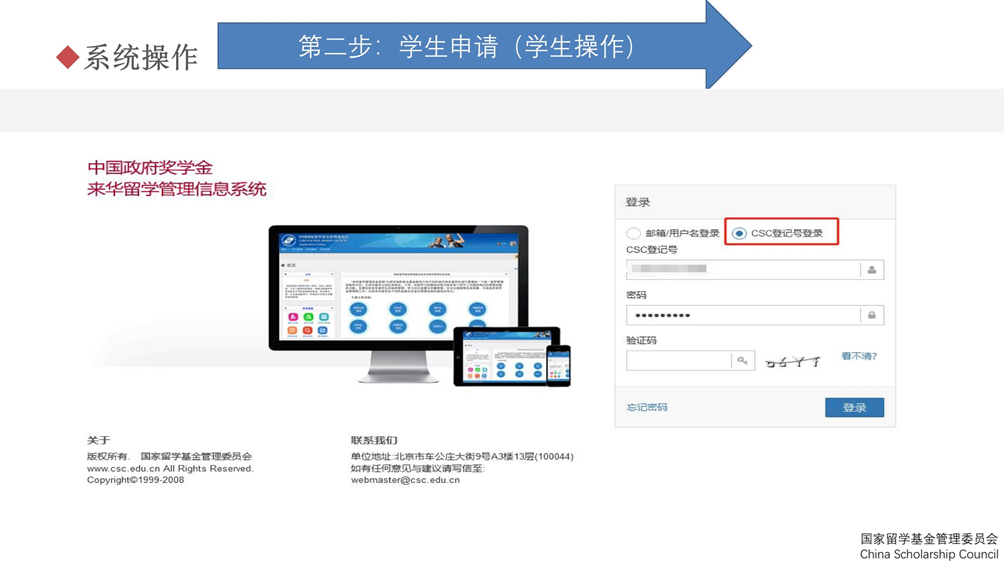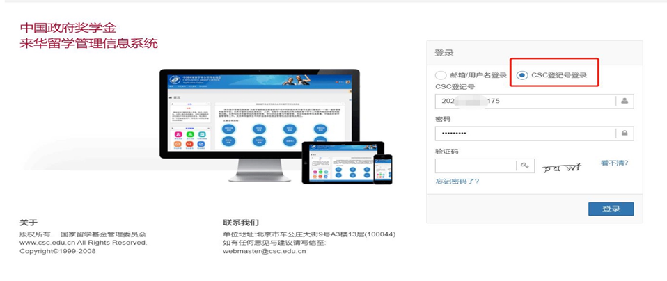 Log in the Chinese Government Scholarship Information System with your CSC number;
